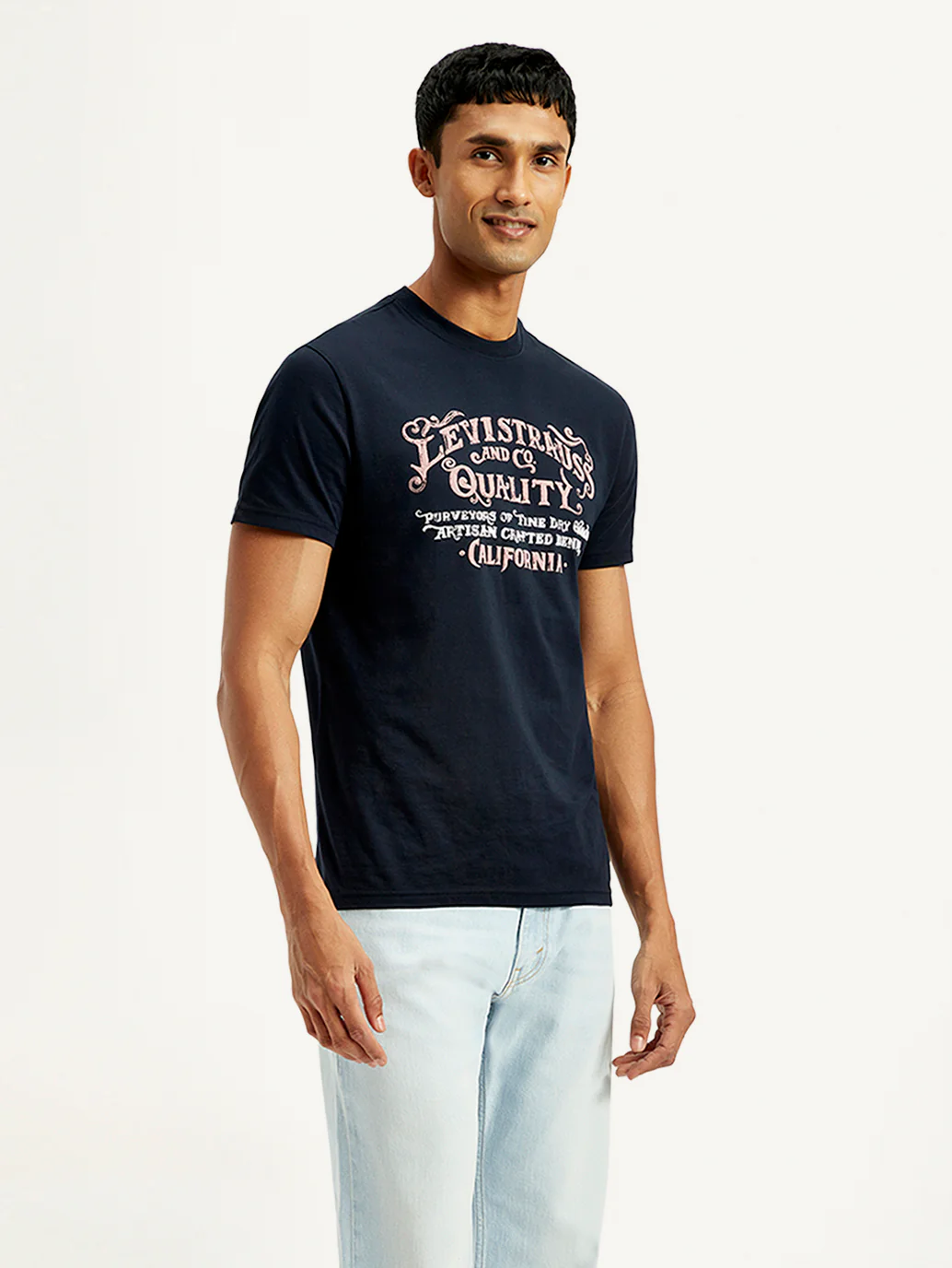 - From coffee runs to casual hangouts, this printed navy T-shirt from Levi’s keeps up with it all. Made using soft cotton and tailored in a slim fit, this men’s tee offers relaxed comfort.